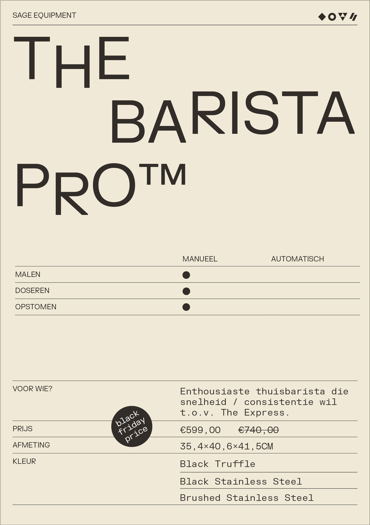 Met de Sage Barista Pro kan je zelf als barista aan de slag met een handmatig espresso-apparaat dat professionele prestaties levert. Dit is de luxueuzere versie van de Barista Express.